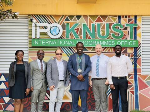 A delegation from Ulster University, Northern Ireland, including Dr. Aaron Courtenay, Senior Lecturer in Clinical Pharmacy, and Dr. Ahmed Abuelhana, Lecturer in Clinical Pharmacy & Pharmacy Practice, visited Professor Daniel Y. A. Duah, Dean of the International Programmes Office (IPO), at KNUST on May 21, 2024. They were joined by Dr Nana Kwame Ayisi-Boateng, Senior Lecturer in the School of Medicine and Family Physician at University Hospital, who leads the antimicrobial stewardship programme. Dr Ayisi-Boateng highlighted the collaborative efforts between the University Hospital, the School of Pharmacy, and Ulster University in the UK, supported by funding from the Commonwealth Pharmacists Association and Tropical Health and Education Fund, UK, for an antimicrobial stewardship programme initiated in late 2021.